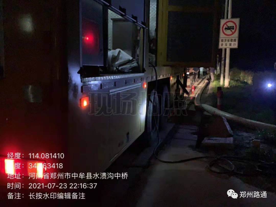 搶險(xiǎn)隊(duì)員于當(dāng)晚9點(diǎn)到達(dá)鄭汴物流通道和S223交叉口向西兩公里的積水點(diǎn),與其他前來(lái)援助的隊(duì)伍一起共同投入搶險(xiǎn)工作中。搶險(xiǎn)工作直至24日早上8點(diǎn)結(jié)束,積水被清理干凈。